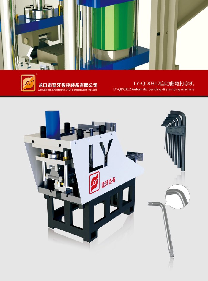 ★內(nèi)六角打字折彎?rùn)C(jī)床改變了傳統(tǒng)的加工工序,針對(duì)于五金工具行業(yè),內(nèi)六角,花形六角板手,及套筒附件等需要既曲彎成型又要打字的產(chǎn)品,進(jìn)行了多工序的整合,一次成料,打字曲彎成型同時(shí)進(jìn)行完成;