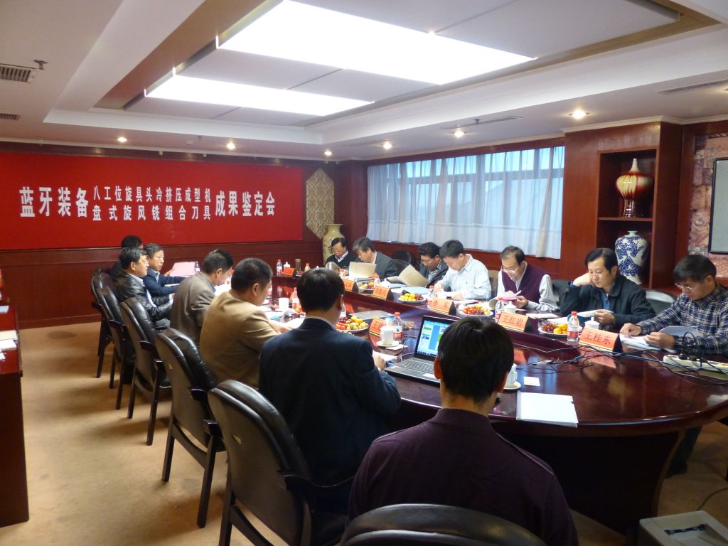 2013年11月6日,龍口市藍牙數(shù)控裝備有限公司兩項目“數(shù)控高效徑向冷擠壓成形機”和“盤式旋風銑組合刀具”科技成果鑒定會在龍口市華龍大酒店二樓會議室隆重召開,到會的有七位省級鑒定專家、各級科技局領導以及藍牙裝備領導和課題組人員。