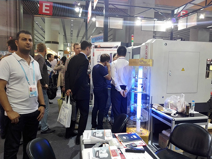 展會期間,來公司展位參觀甚至現(xiàn)場試用的國內(nèi)外客戶絡(luò)繹不絕。據(jù)展會結(jié)束之后統(tǒng)計(jì)的意向訂單,國內(nèi)客戶約占25%,東南亞地區(qū)占29%,西亞中東非洲占34%,其他地區(qū)約為11%。從這個(gè)比例可以看出,我們藍(lán)牙裝備的數(shù)控機(jī)床產(chǎn)品,不管是在國內(nèi)市場,還是國際市場,都能得到客戶的認(rèn)可。